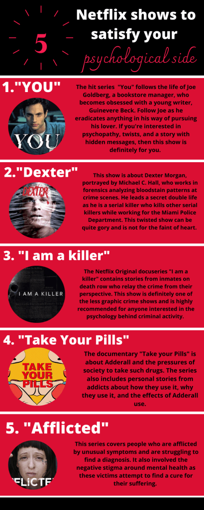 While on Netflix, I noticed an influx of criminal/forensic shows. I’m super into these kinds of shows and apparently so are a lot of people as Netflix has released plenty of documentaries and series concerning the topic. I enjoy watching them in particular to psychoanalyze the characters and try to guess their backgrounds based on behavior. If you need some new shows to get into while bored in quarantine, here are just a few of my suggestions.